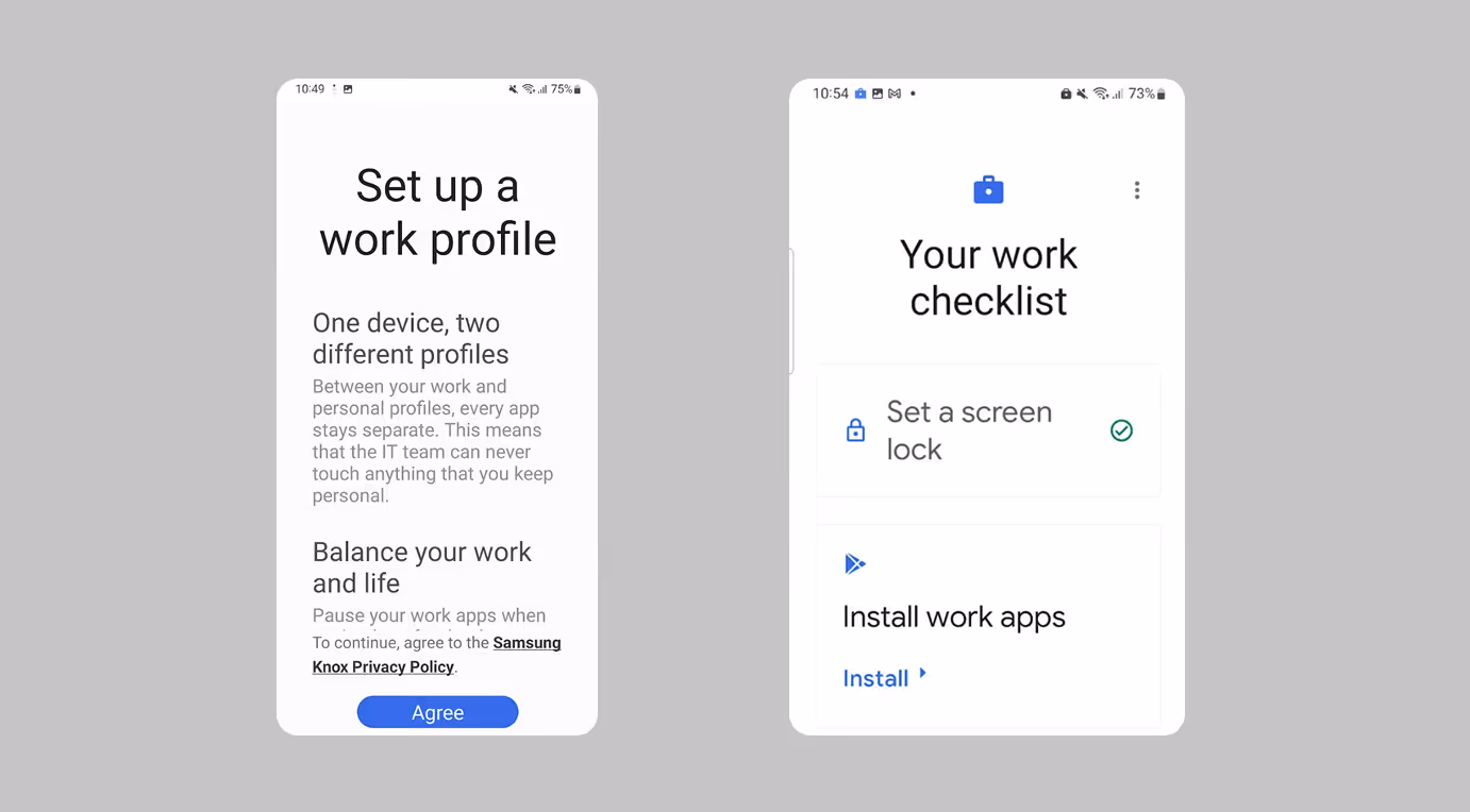 Click the notification to begin the MDM setup process and follow the further prompts to install and configure your work profile.