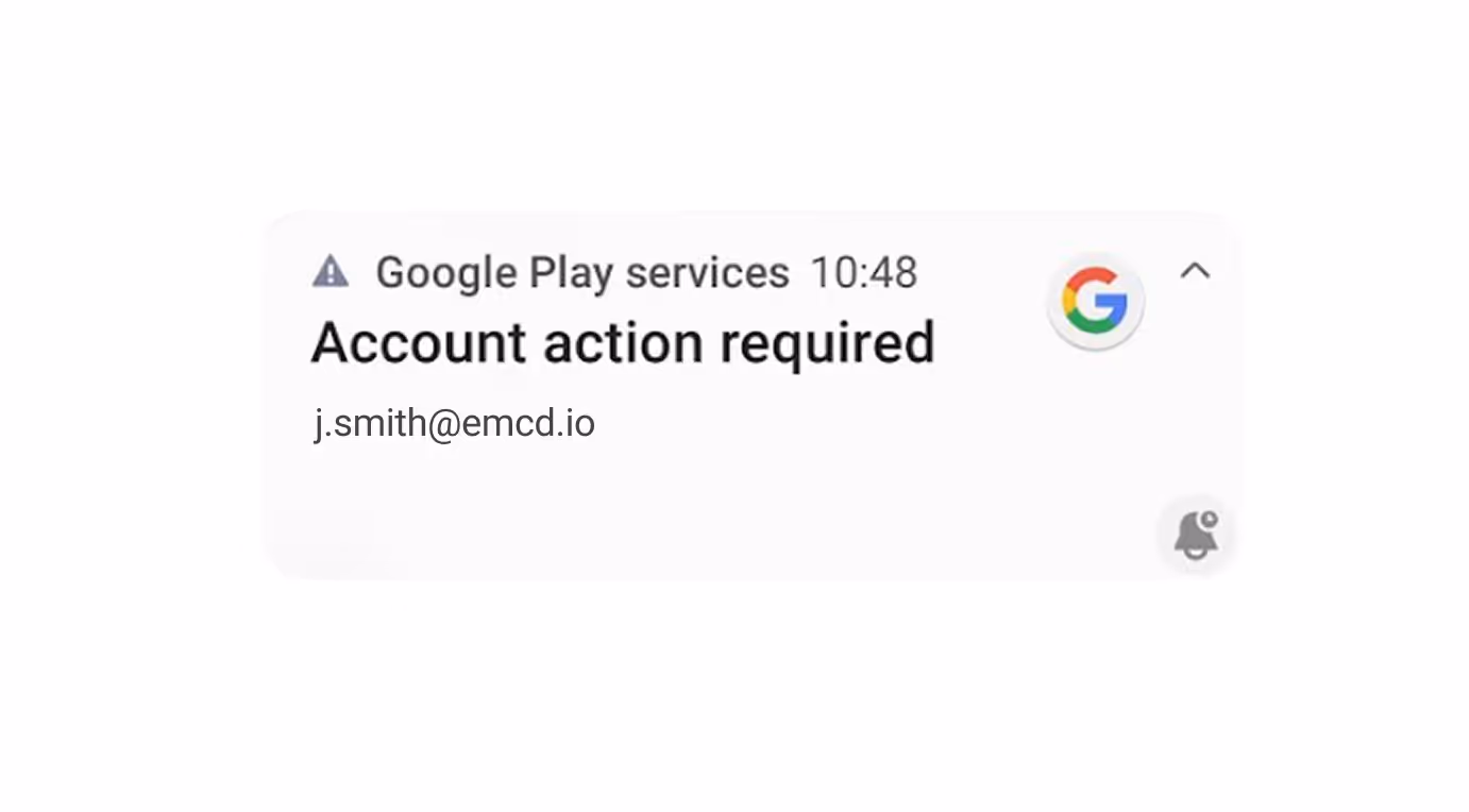 Shortly after MDM is activated for your account, the device will display the notification Account action required